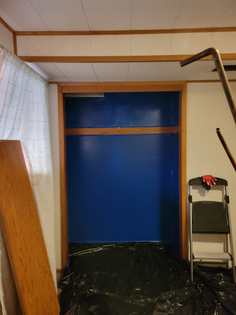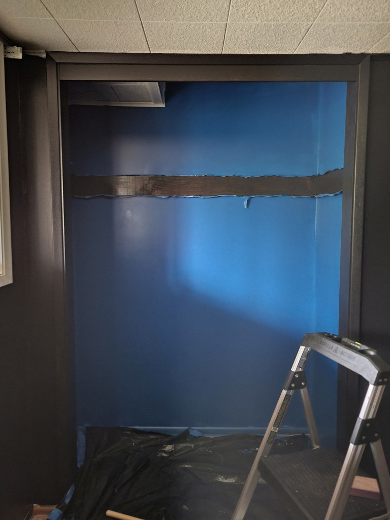 I really appreciated the level of satisfaction I got from painting bold colors…the dopamine was high on this one. I started with the closet (the warm-up) and then worked my way into the room (the workout).