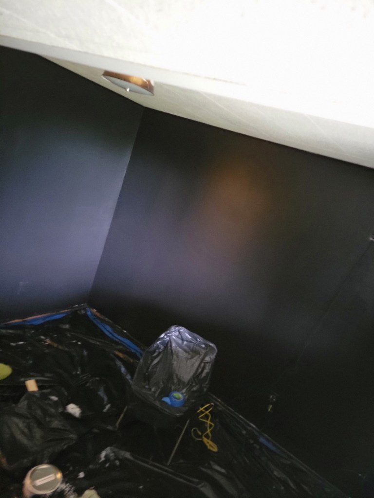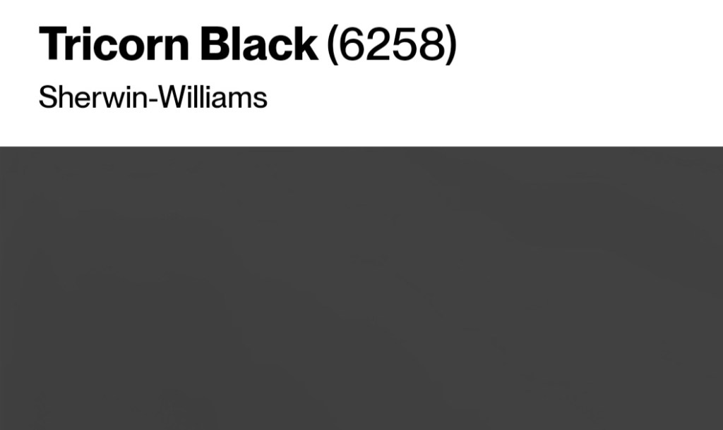 To prep, I taped two rows of painters tape around the baseboard and covered the floor in plastic. Did all my prep work, actually work!?? Well, it was a good faith effort. Even using this painters edge, I still had a few blobs of black paint. All small, thankfully! I tried using this, but umm, the magic wonders didn’t stand a fight with Tricorn Black. So……I used some scissors to trim a little off the top, and it’s not noticeable at all!
